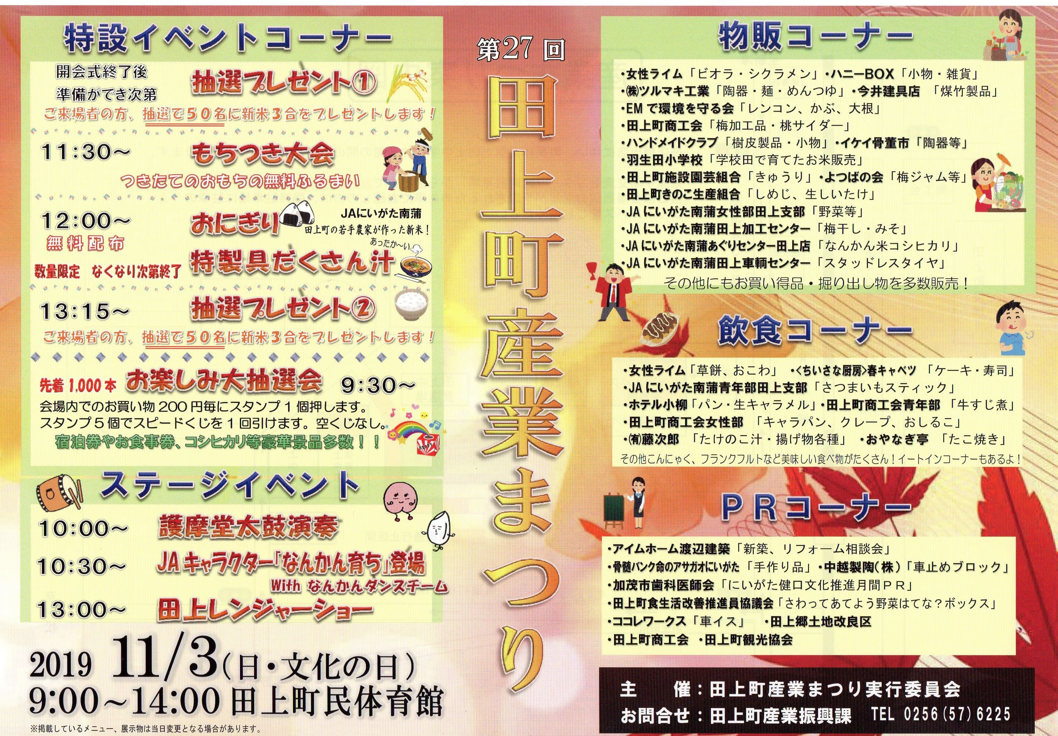 11月3日 (日) 田上町民体育館で行われた 「第27回 田上町産業まつり」無事に終了致しました。